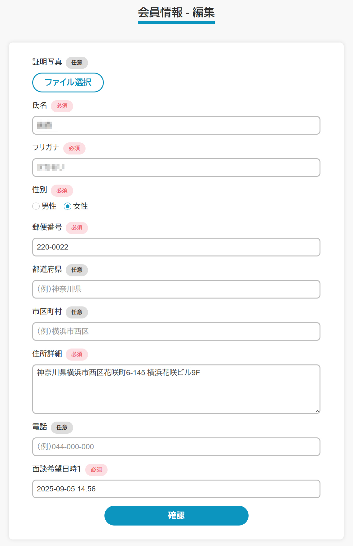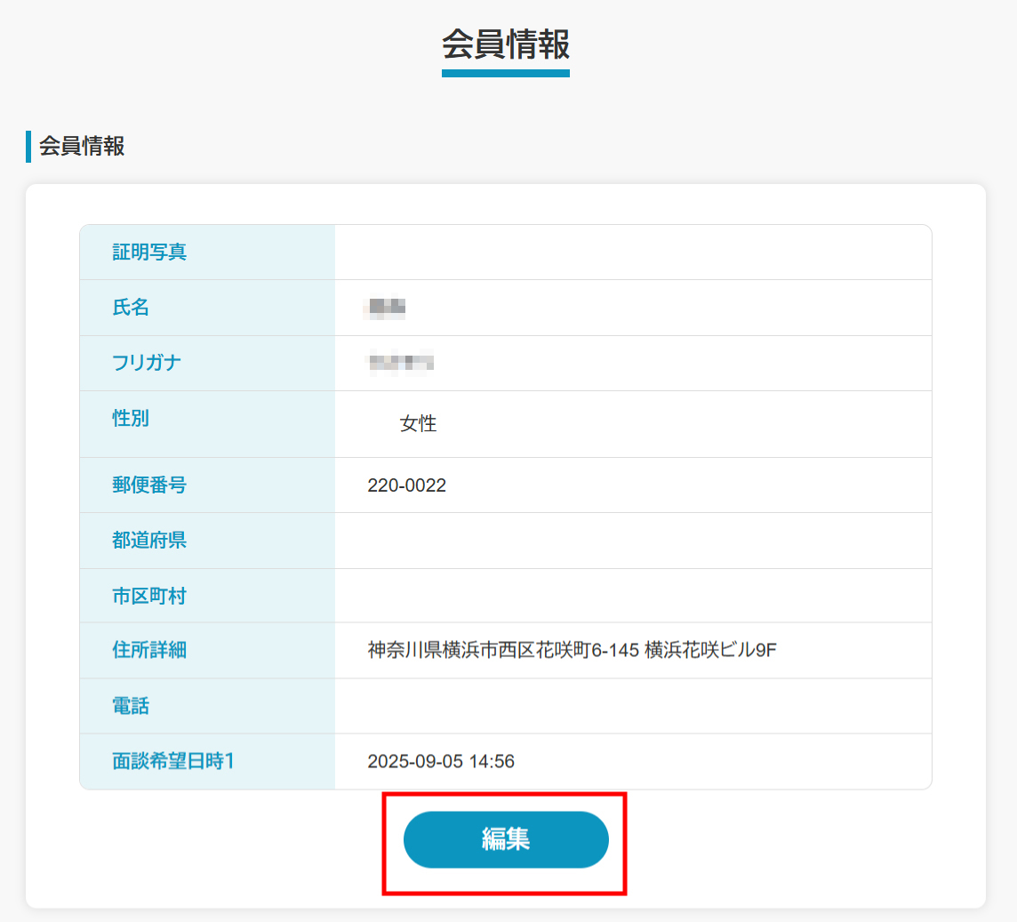 [ 編集 ]を押下すると編集画面に遷移し、求職者が情報を編集できます。