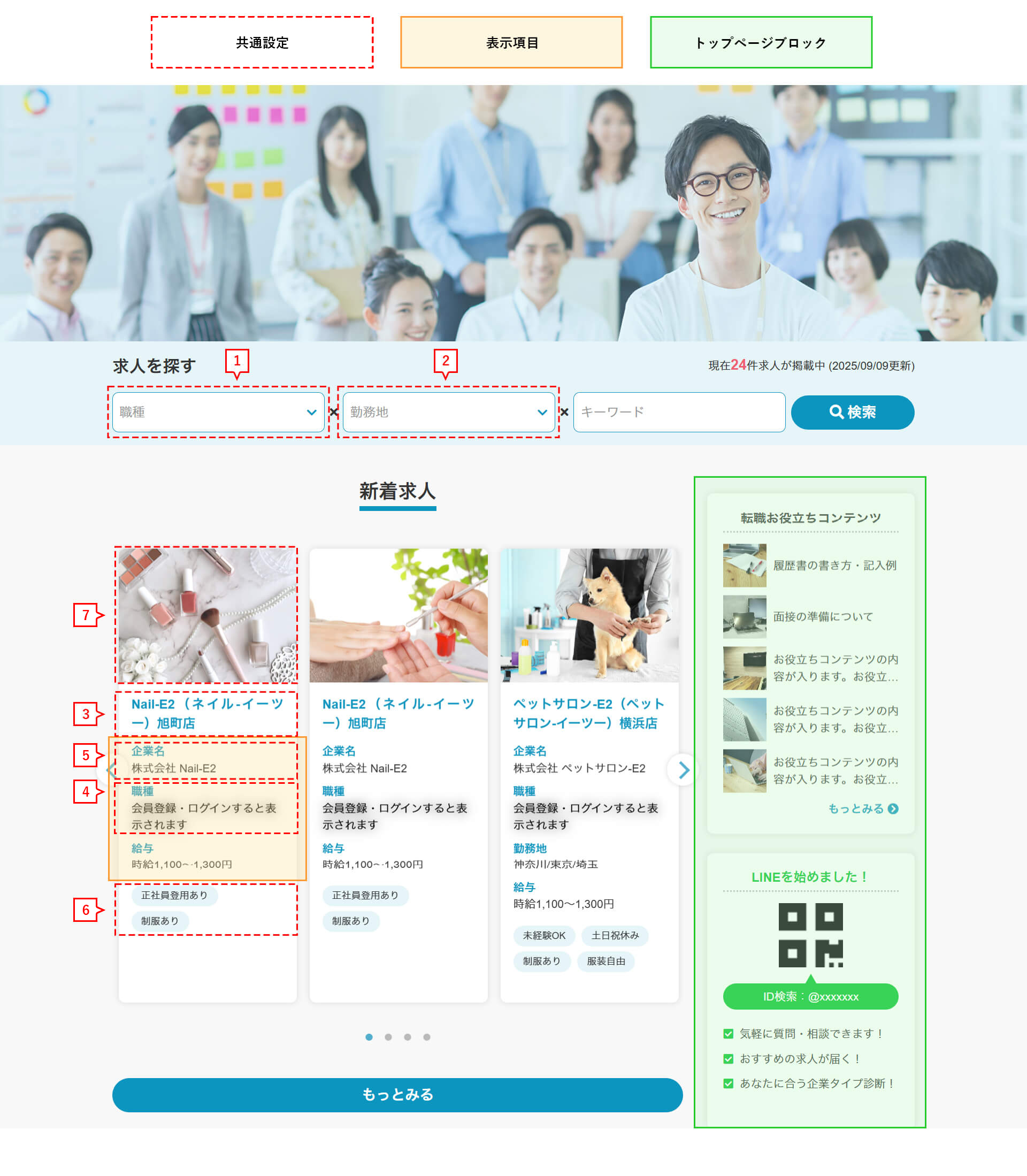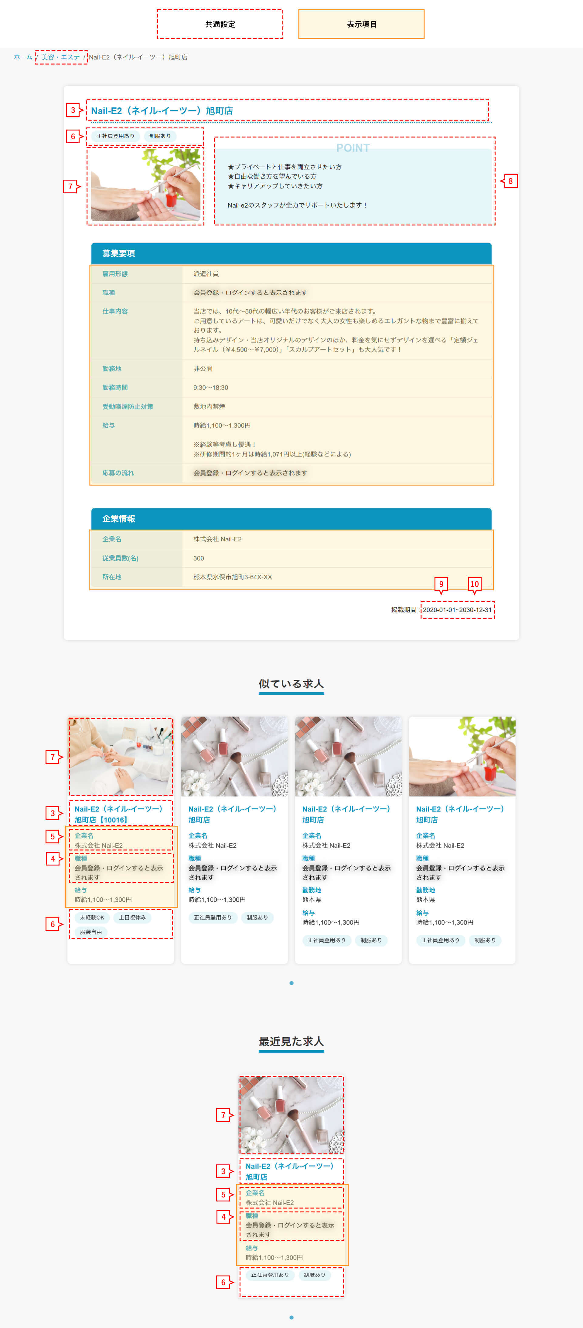 ◆管理画面の設定箇所:求人管理 > 表示設定 > 共通設定